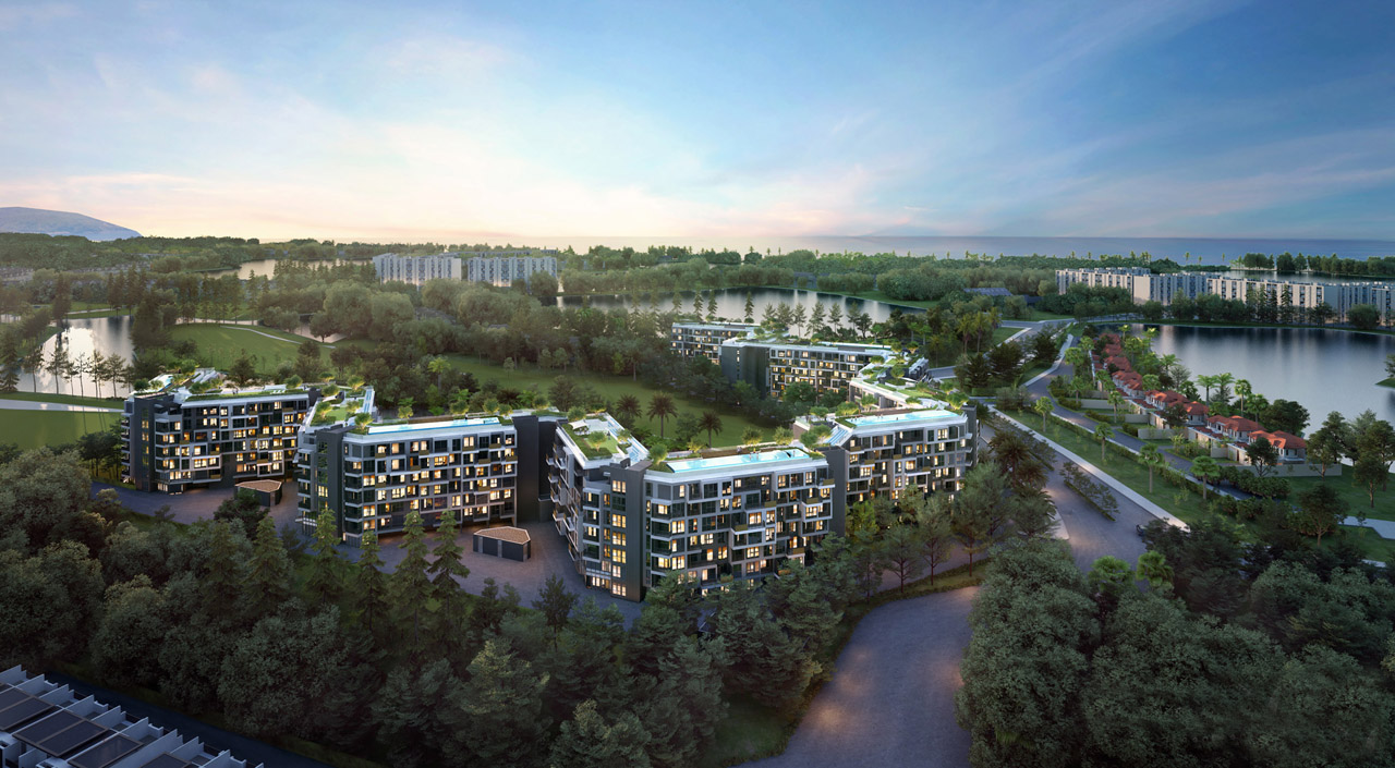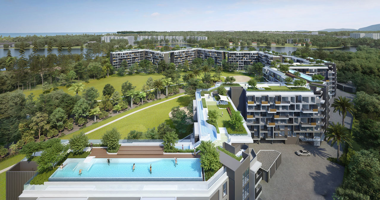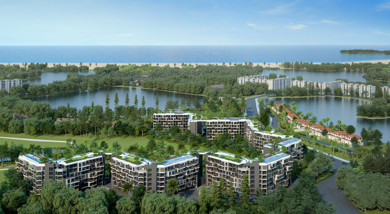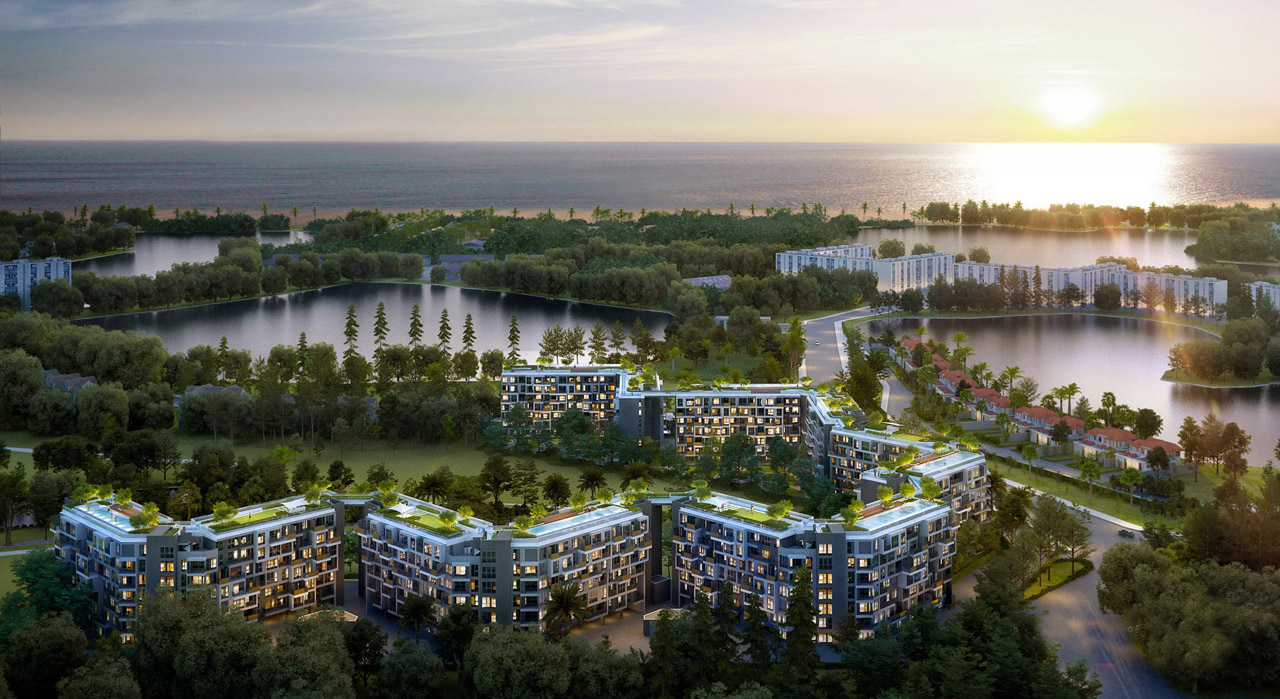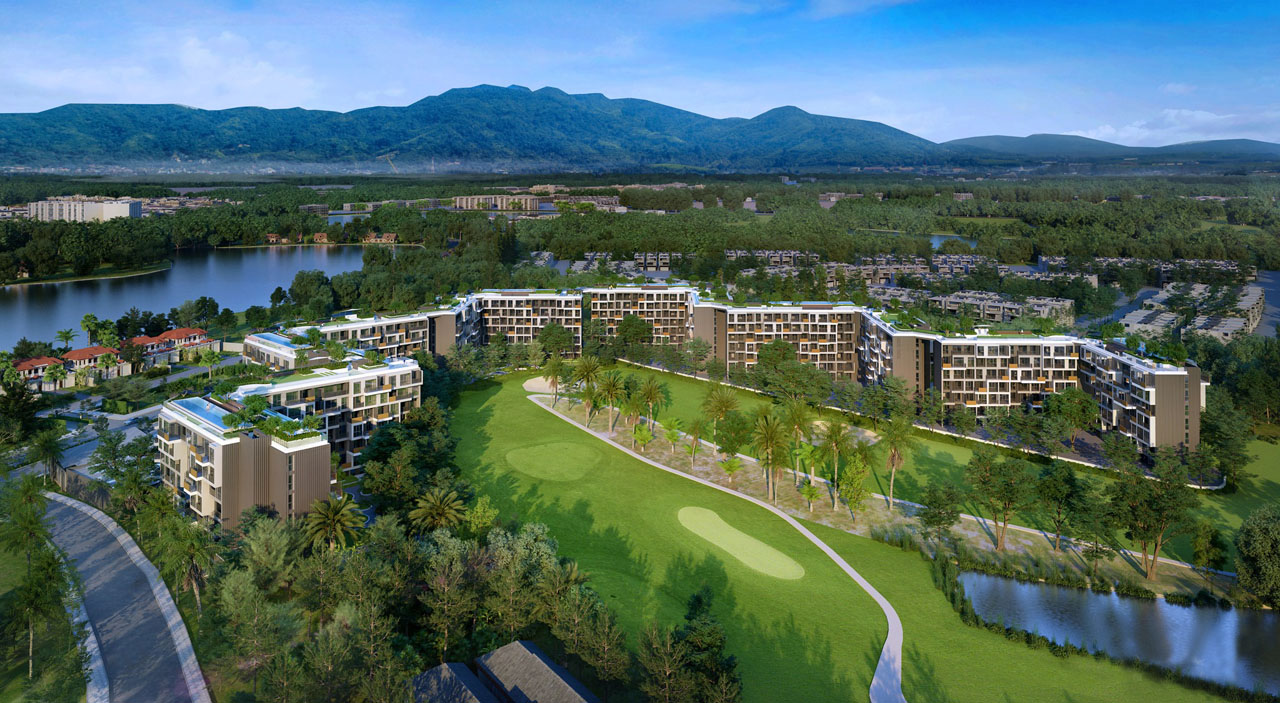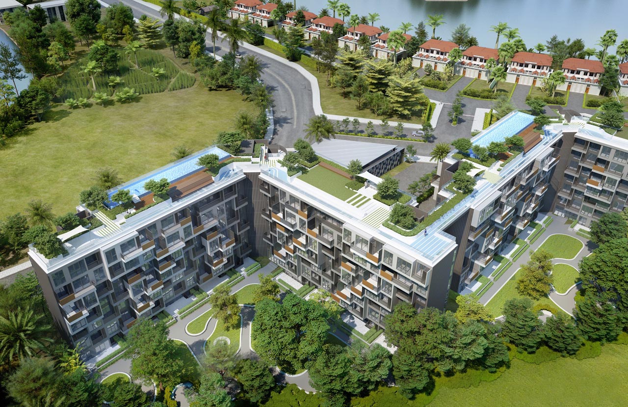 Dự án có quy mô 12 hecta, gồm tổ hợp các khối nhà cao 7 tầng được bố trí liên hoàn theo hình zic zắc bất đối xứng, tạo thành một tổng thể kiến trúc độc đáo, hiện đại mà vẫn gần gũi với thiên nhiên. Dựa trên các hình ảnh 3D concept, có thể thấy các tòa nhà được sắp xếp uốn lượn quanh hồ nước lớn, với mái xanh và hồ bơi tràn viền, hòa quyện với cảnh quan núi non và biển cả ở hậu cảnh. Điều này không chỉ tối ưu hóa tầm nhìn mà còn thúc đẩy sự lưu thông không khí tự nhiên, giảm thiểu tác động của nhiệt độ bức xạ – một vấn đề phổ biến ở các khu vực nhiệt đới.